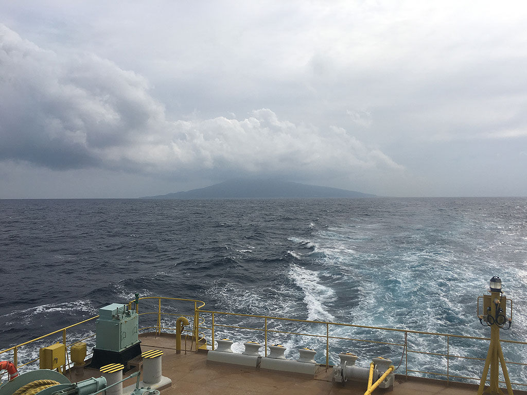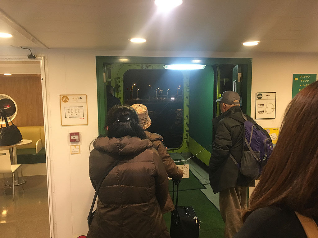いよいよ出航。来た時は三池港で下船したのですが、帰りは伊ケ谷港という事でペンションから送ってもらいました。この4日間、実際に話しをした人は少ないのですが、みなさん、三宅島エンデューロの事はご存知で、是非出てくださいと、歓迎する意見一色でした。反対する意見もある様ですが、2007年よりあしかけ10年、島のイベントとして定着してる感が見受けられました。帰りの船は1330時着岸という事で、その30分前に島の薬局で買った酔い止めを服用しました。この薬の効果は絶大で、全然船酔いもなく、東京湾に入るまで船の揺れも振動も気にする事なく爆睡してました。今回の旅行で最大の成果は、如何に船酔いを防止し、効率良く睡眠を摂るか、という事を学習する事であったと思うのですが、結論からいうと、出航前に酔い止めを飲み、東京湾の夜景など眺めて遊んでるのではなくて、浦賀水道を抜けるまでの低速航行の間に寝てしまう、これに尽きると思います。