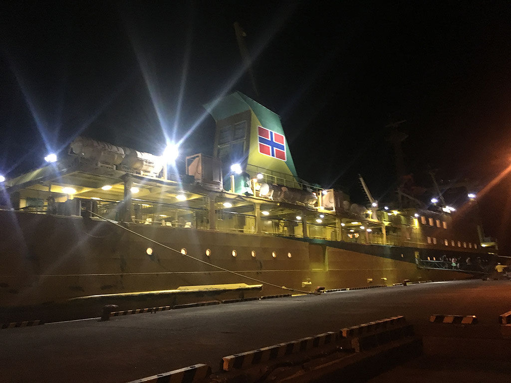そのまま甲板で遠ざかる陸地を眺めてるのも良かったのですが、結構風がキツくて寒しし、夜間航行では安全のため、0000時から0400時までデッキへの扉を閉める、という事で船室で横になる事にしました。