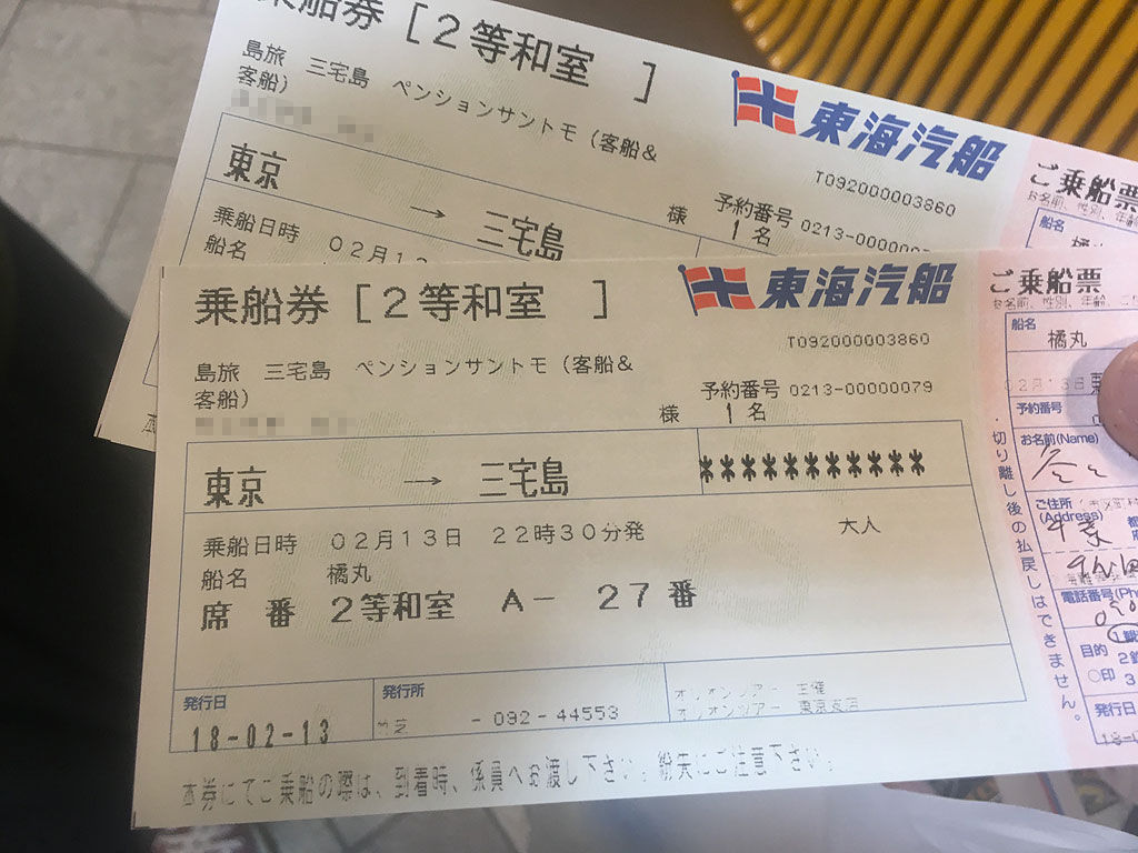 三宅島には、飛行機やヘリコプターでも行ける様ですが、値段も高いですし、本番の予行演習の意味もあるので、船で行く事にしました。乗船は乗船は2230時という事ですので、少し余裕を持って出発し、浜松町で夕食を食べる事にしたのですが、実際には、チケットの交換とかを済ませると、乗船まで30分くらいしか時間がなく、ゆっくり食事してる暇はありませんでした。近所のすき家で牛丼特盛玉付きを掻き込み、一緒に乗船する若い人らにならって、パンだのカップ麺だのを買い込み、予定通り2230時に乗船。船に乗る事自体が10年ぶりなので、結構ワクワクしてました。乗船後、ただちに自分の船室を確認。2等船室ですので、雑居のごろ寝になる訳ですが、繁忙期でないせいか、あてがわれた船室には自分らしかいませんでした。