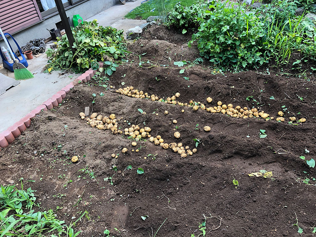 ジャガイモは連続して作ると、連作障害というのを起こすらしいので、次回は違うのを植えねばなりませんが、今のところ、この喪女ガルテン、なかなかいい成績を出しているので、今後も期待できます。