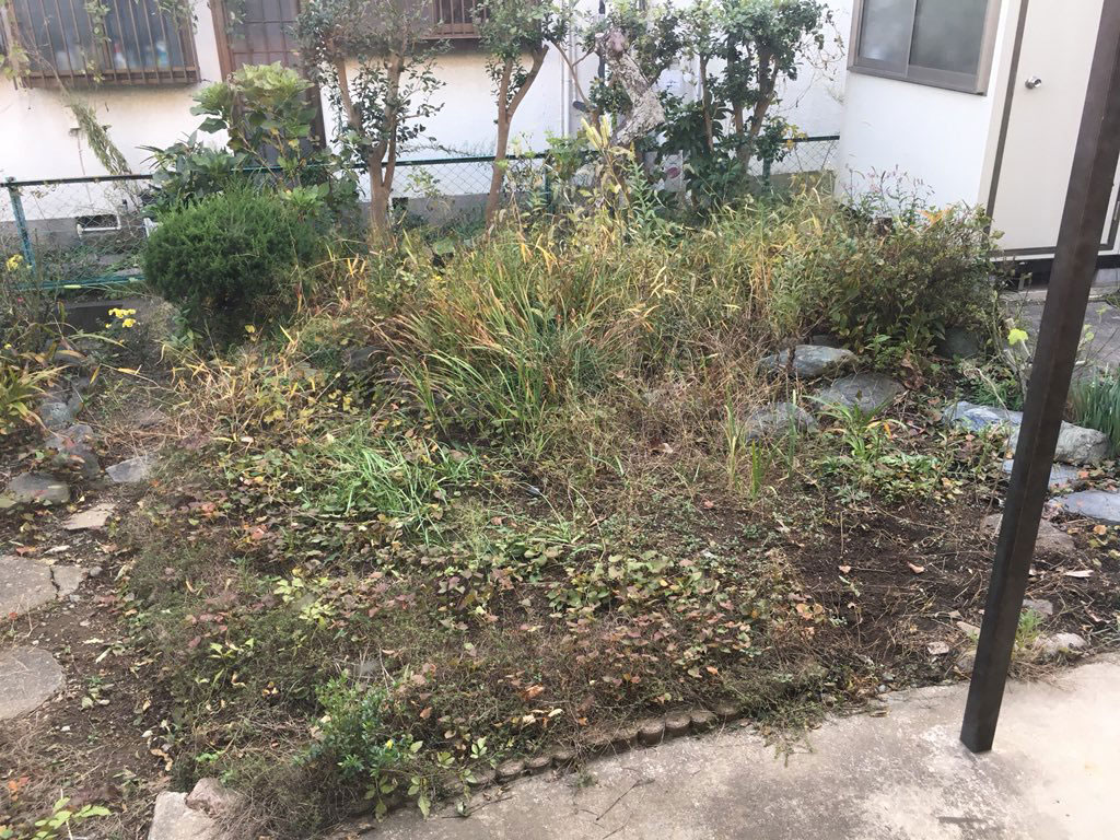 この家に引っ越した時、庭は結構荒れ放題で、それこそ草間の陰から何か覗いてそうなくらいの、鬱蒼とした状態でした。とにかく、この状態では鬱陶しい事この上ない。引っ越しの荷物がそこそこ片付いた時点で、むずむず言う嫁はんのケツを蹴飛ばし、出勤前の午前中に突貫作業で雑草の除草、枯れた木の伐採を行い、ついでに石畳の小道も整備し、10日ほどでそれなりの見栄えする庭を完成させました。冬の間は何植えても育たないので、そのまま放置していたのですが、3月に入って大分暖かくなってきてるのに、家庭菜園欲しがった嫁はんは一向に動く気配がない。3月も下旬にさしかかり、流石にどうするのか聞いたところ、「盛岡では4月下旬ころから」と宣う。まてまて、一年の半分が冬の盛岡ではそうかもしれんが、千葉といえども関東圏の四街道は、3月も中旬を過ぎれば春である。そして、早い所では2月下旬頃からジャガイモを植えてたりもするらしい。