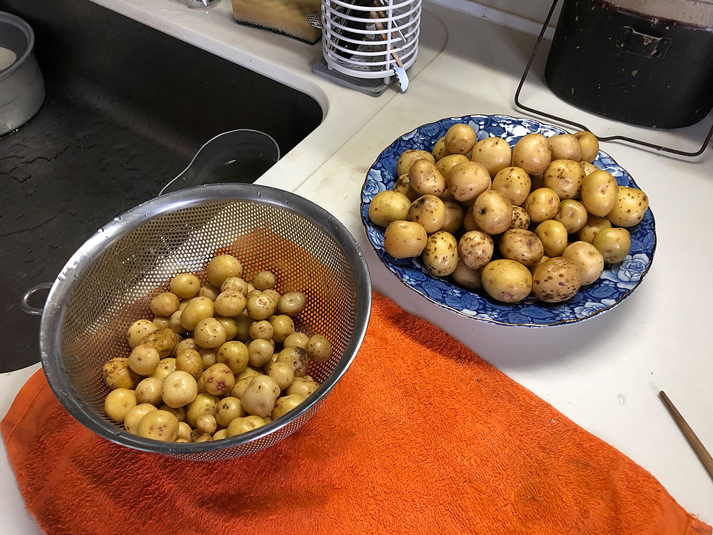 今を去る事40年前、小学校の頃。クラスでジャガイモを植えるというイベントがあったのですが、どういう訳か自分の芽だけ出て来ず、みんなが出来たジャガイモ見てはしゃいでいる中、自分だけはぶっきらぼうに我関せずの態度だったのを思い出しました。実家の庭に植えたヘチマも、ツルばっかり伸びて結局実は出来なかったし、自分の記憶にある限り、まともに出来たのはアサガオだけでした。今回は、40年ぶりのリベンジという訳です。なかなか良く出来て満足です。ジャガイモは連続して作ると、連作障害というのを起こすらしいので、次回は違うのを植えねばなりませんが、今のところ、この喪女ガルテン、なかなかいい成績を出しているので、今後も期待できます。
