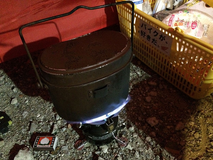 まぁ、こんな事もあろうかと、コールマン442も持参してました。この日はまだ8月だというのに、10月下旬くらいの涼しさでした。しかし、そんなのお構いなしに、強力な火力を発揮していました。しかし、4合も入れているので沸騰に時間が掛かったこと、弱火にしてから重湯が消えるのに時間が掛かったところをみると、やはり低温の影響は受けていた様です。
