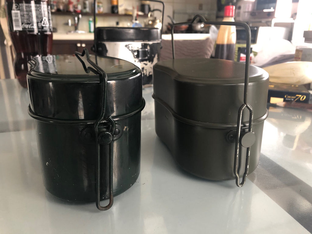 自衛隊の飯ごう2型は結構人気があるようです。ようです、というのは、当協会の中の人自身はあまり高い評価を与えてないので、あまり気に留めてなかったからです。逆に、ニュートップの3合飯盒には高い評価を与えているのですが、今回は大きさの似たこの二つの飯盒の比較をし、かつ、こうして欲しかったといった点を論じてみようと思います。