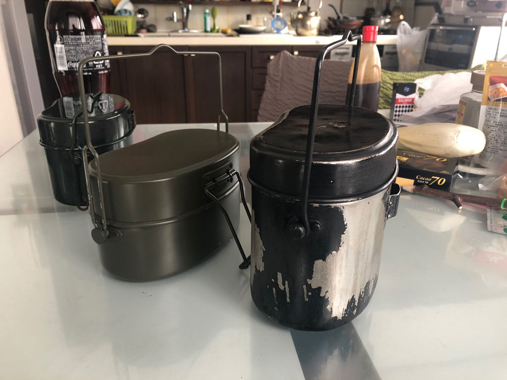 もっとも、その3合飯盒は、メーカーが消失して既に数十年、もはや市場在庫もほぼなく入手は不可能です。飯ごう2型が人気があるのは、やはりコンパクトなソロ用の飯盒であるからでしょうし、かつ現用装備である事から、品薄であっても入手は不可能でないからでしょう。炊飯の機能も、トランギアのメスティンに比べれば遥かに使い易い訳で、その意味で人気があるのはもっともな事だと思います。