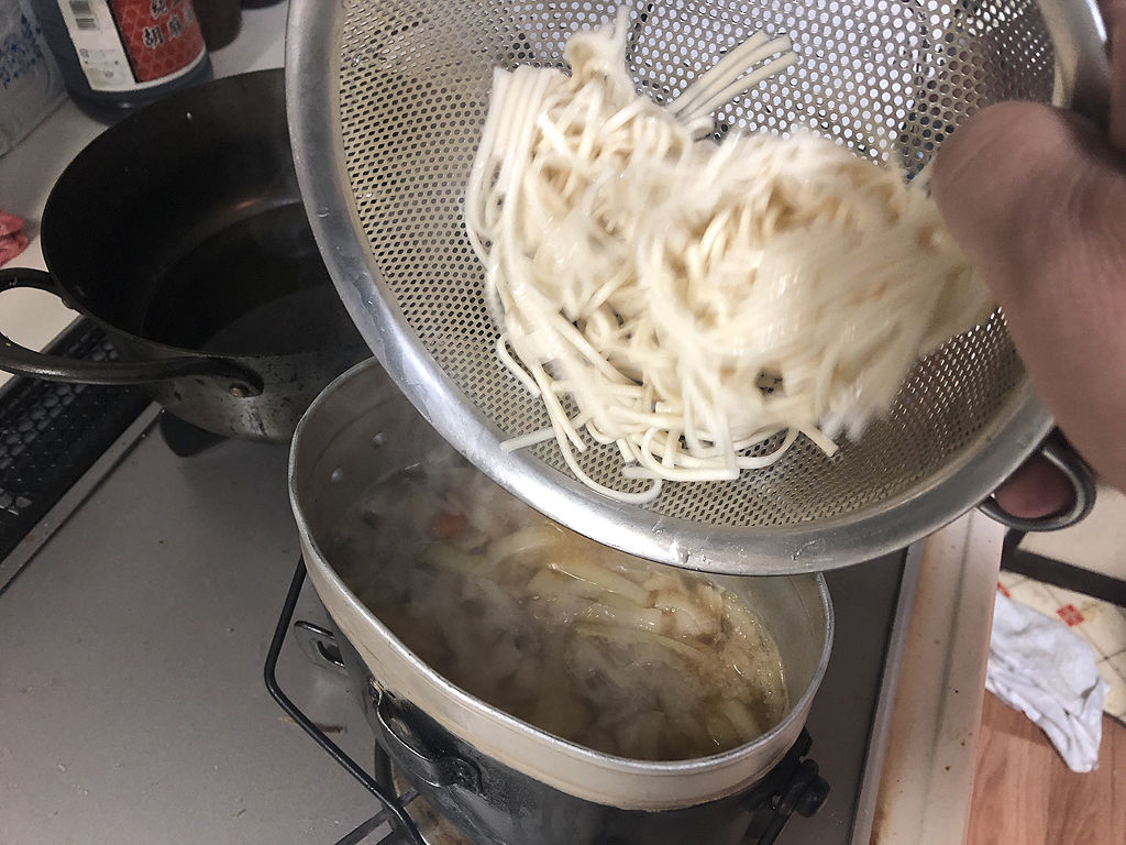 先ほどのうどんを投入し、よく具とかき混ぜます