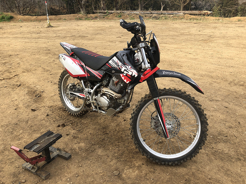 去年はCRF450RX“ゲイレルル号”のもっぱら足つき問題を解決するために、谷田部エンジョイスポーツランドに行く事が多く、成田モトクロスパークには2月以降、全然行ってませんでした。ところがそのゲイレルル号は去年の三宅島エンデューロでのいきなりのエンストが今だに原因不明で不動のままで、WEXイースト開幕戦はXR230“パンツァーファウスト号”を一時的に現役復帰させて臨む事に。今回は久々にXR230でクロスカントリーの練習をする事にしました。