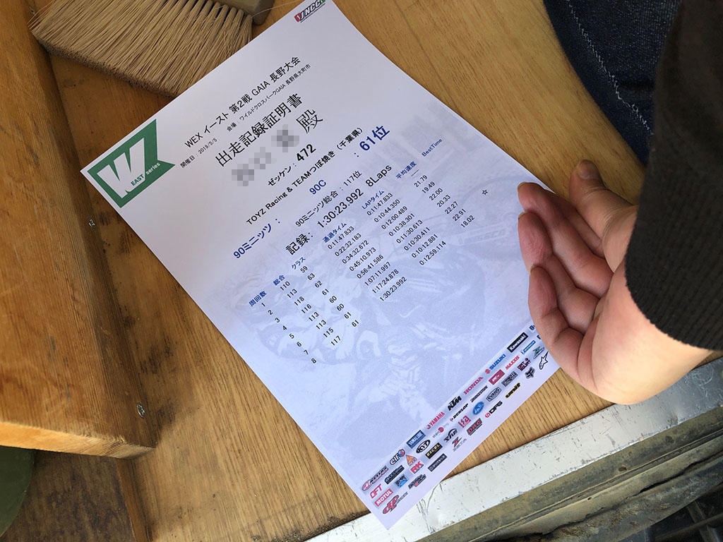 ゲイレルル号が帰ってきたのは3月20日で翌21日に成田MXPで試走した訳ですが、この時感じたのは、「半年ぶりに乗ると勘が鈍ってるなー」という事でした。各種セッティングは去年の三宅島で完成の域に達しているのですが、やっぱり半年乗ってないと、乗っているというより乗せられている感じ。なのでまぁ、GAIA第二戦はどっちかというと、体をバイクに慣らす為の練習試合みたいな感じになるかな、と思いました。