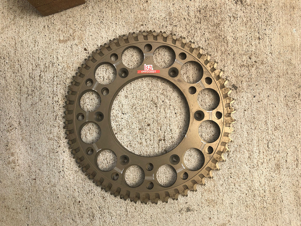 前回の神立で感じた事は、「2速で走るには遅く、3速に上げるにはトルクが足りない」という、「ちょっと何か足らん感」でした。そこでスプロケのセットを見直す事にし、リアが51丁だったのを52丁に変更する事にしました。もっとも、7月上旬に注文したところ、「入荷までに3週間ほどかかる見込み」との返事があり、運が良ければ爺ヶ岳に間に合うという感じだったのですが、今回は運が良くて直前に物が届きました。
