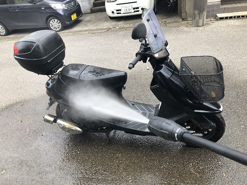 以前、発電機に電動洗浄機を付けて使っている人を見かけた事があるのですが、これは結構良いアイデアではなかろうかと思います。エンジン洗車機では、洗車しか出来ませんが、同じエンジン駆動でも発電機であれば、防災用にもキャンプにも使えますし、そっちの方が用途が多いです。もっとも、発電機も大概いい値段しますし、これから新たに買うとなると、財布にはなかなか優しく無い話しです。しかし、ロードやモタードをやってる人なら、タイヤウォーマー用に発電機を持っている人が多いと思いますし、そういう人がもし洗浄機も買うとなったら、電動洗浄機を選択肢に入れるのもアリかと思います。