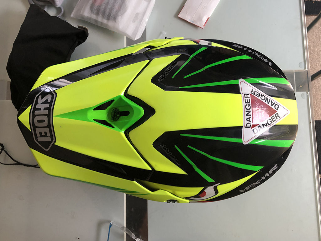 先に述べた様に、ウレタンクリアは乾燥でなく硬化ですので、24時間ほどしたら大体乾くのですが、今回は大事とって1週間ほど間開けるつもりでいました。そして、ふと後頭部のDANGERステッカーを見てみると、上に来るはずの辺が斜め右下になっている。なんと向きを間違えて貼っている。これに今まで気が付かないとは! ウレタンクリア吹いた後にこれに気がつくとは! もう、認知症にでもなったのでしょうか。逆走老人になった気分になって、非常に陰鬱な気分になりました。