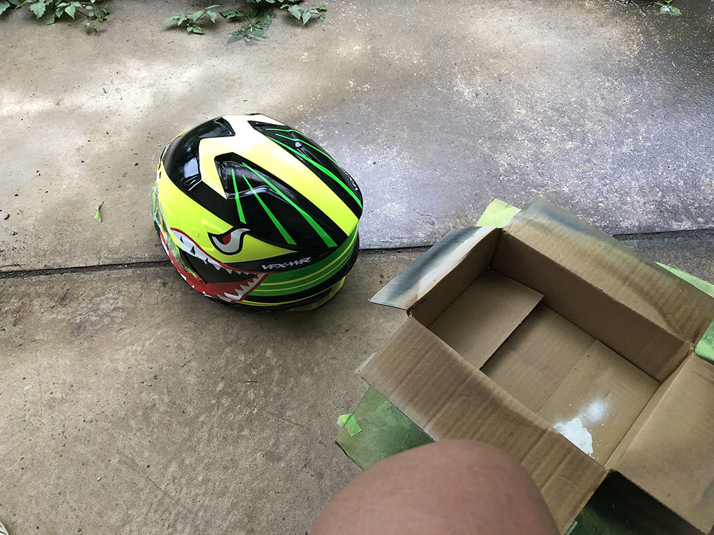 ヘルメット本体のウレタンクリアの硬化を待つ間