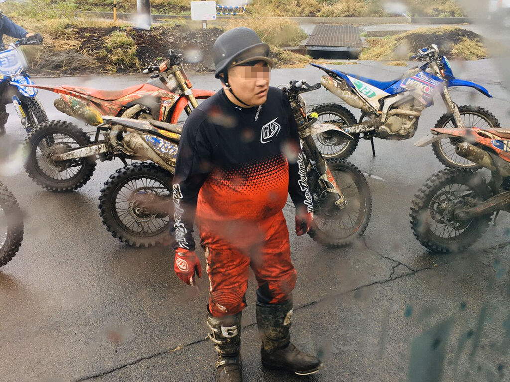 こんな具合で、どうにか1周回ってきて、ピットイン。そのまま大会本部のテントをハシゴして雨宿り。走っている間は感じなかった寒さも、じっとしてるとジメジメと感じてくる。ぶっちゃけ、もう走る気はありませんでした。雨降ってるし、ブーツの中はグチャグチャだし、コースもグチャグチャ。これの一体どこが「ご褒美レース」なのかと。サバゲー時代だって雨降った時はやらなかったのに、エンデューロとなるとやらないかんのが悲しいところです。しかも、本土のレースならヤンピと決めれば、さっさと辞めて片付けて帰る事も出来ますが、ここではそれさえ出来ません。
