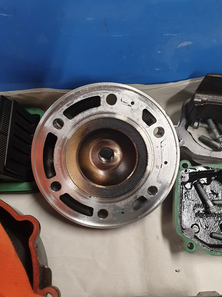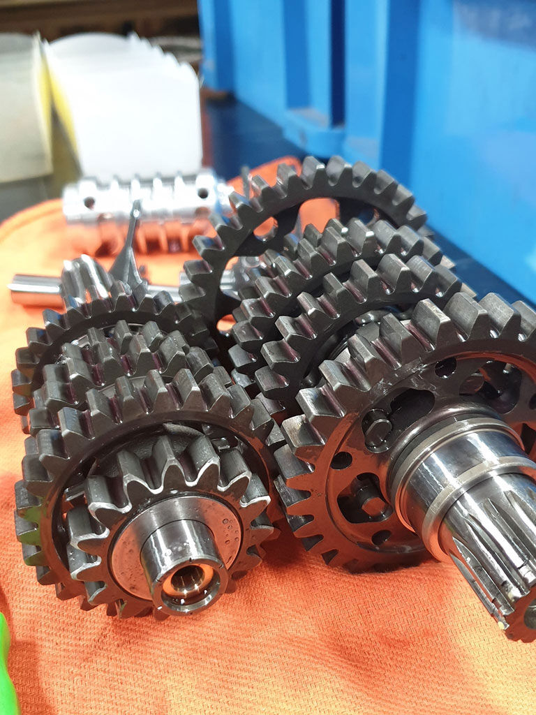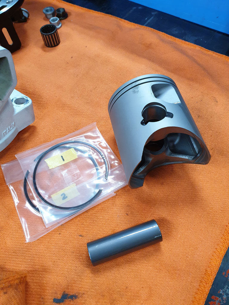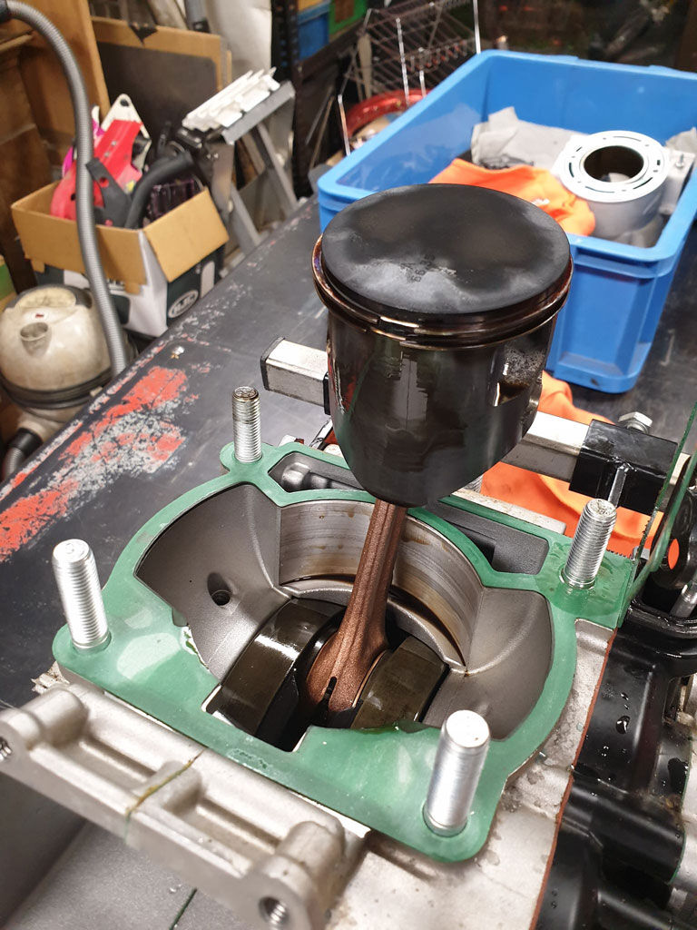 作業に出して約1ヶ月後、エンジン内部の各パーツにWPC加工とDLC、錫、モリブデンの加工が施されて帰って来ました。2stのエンジンはヘッドにバルブが付いてたりしないので、4stに比べると組むのが楽との事でしたが、イタリア人が作ったエンジンは良く出来たエンジンだったとの事。今回、その良く出来たエンジンに日本の技術を組み合わせて、最高のエンジンにした訳です。