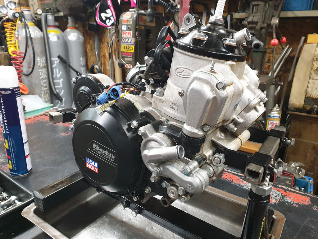 しかし、実際に慣れ始めると、意外と結構軽いエンジンである事に気がつきました。そして、決定的だったのが、JEC大試乗会でBETAのRR4T 350に乗った事。このエンジンが、WPC/DLC/モリショットをフル加工したCRF450RXと同じ様に、非常に軽いエンジンであったのです。つまり、BETAは「そうした加工」をしなくても、そう言うエンジンだったのです。