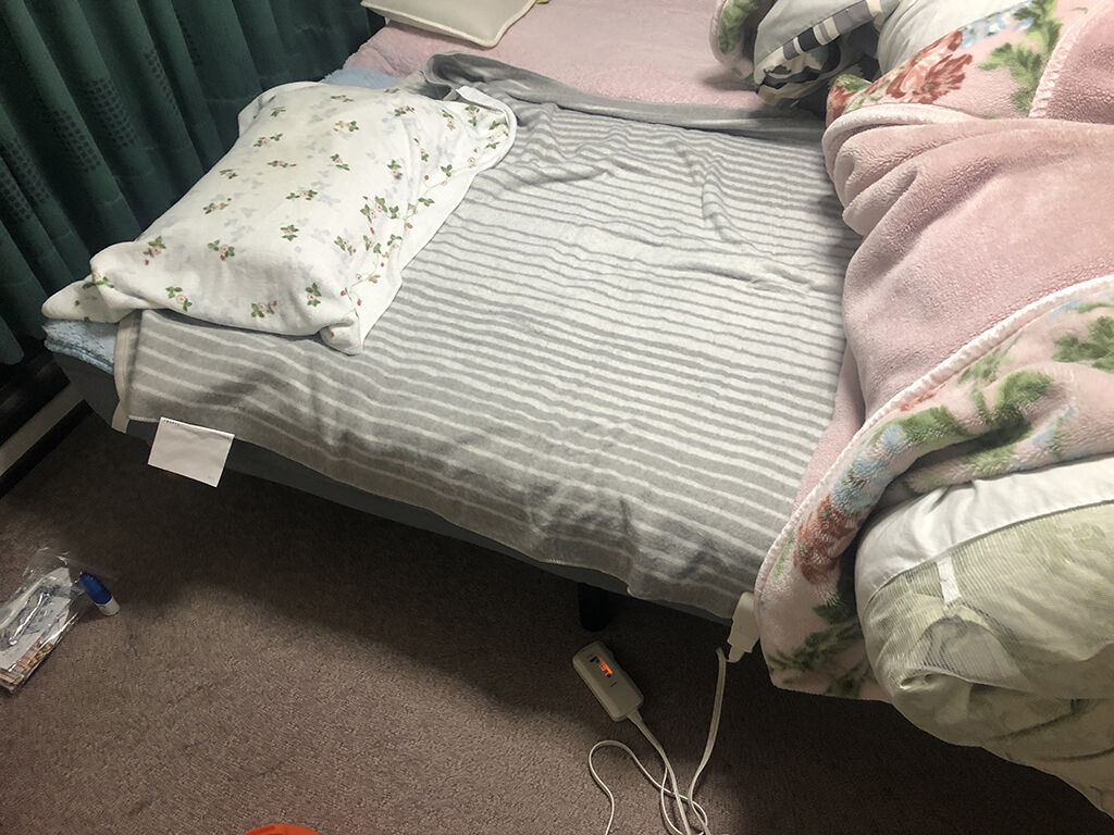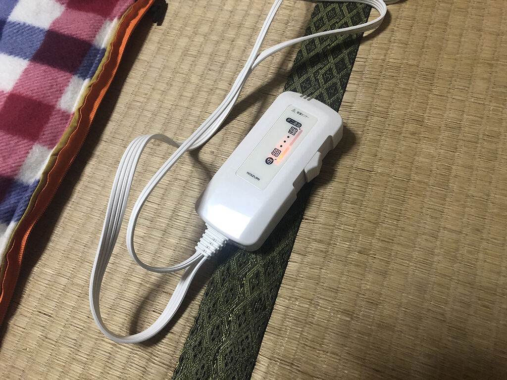 とりあえず、普通に敷いて使ってみました。コントローラーは「中」に合わせました。敷き毛布の上に直接寝たのですが、温いと言えば温い。しかし、予想してたほど温い訳でもない。まぁ「強」にしてなかったので何とも言えませんが、無いよりマシ、というのが一番最初の感想でした。