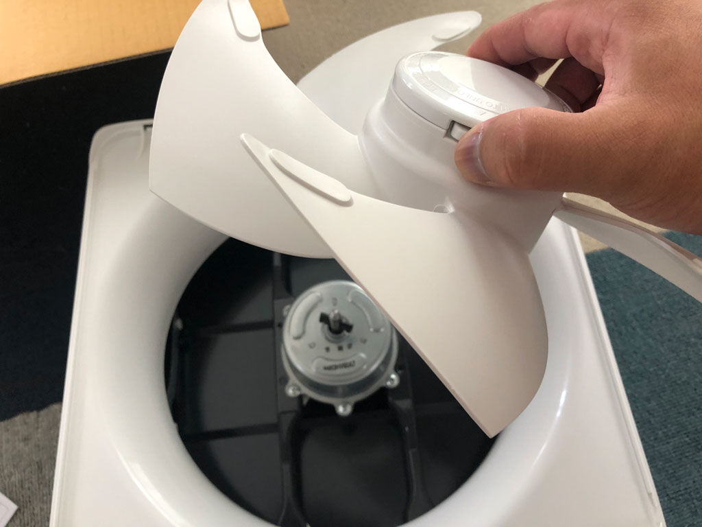 この種の換気扇の重要ポイントは、「どれだけ掃除し易いか」という事だと思うのですが、この換気扇、これまで自分が知ってるのより遥かに便利に出来ていて、フィルターの取り外しも、カバーの取り外しも、台所に立ったまま出来る様に、簡単に取り外し出来ます。驚いたの羽根で、ボタン一つで外す事が出来、かつ羽根を押し込めばセット完了です。非常に優秀です。