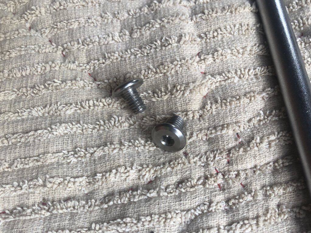 あと、フロントディスクガードがブラブラになっているので、よく見てみたら、固定のボルトが全部緩んでて、1個無くなっていました。いわゆる超低頭のボルトなので、ナップスや2りんかんに行けば汎用品があると思ったのですが、M6の10mmのは無し。ネットでネジ屋に注文するにも、違うのが来ても困るので、バイク屋さんに頼む事に。同じのは無くても、問題ないのを付けてくれるでしょう。CRF時代、ここのボルトが緩んだ事はなかったので、全く注意してませんでした。ネジロックでもしとけば良かった。