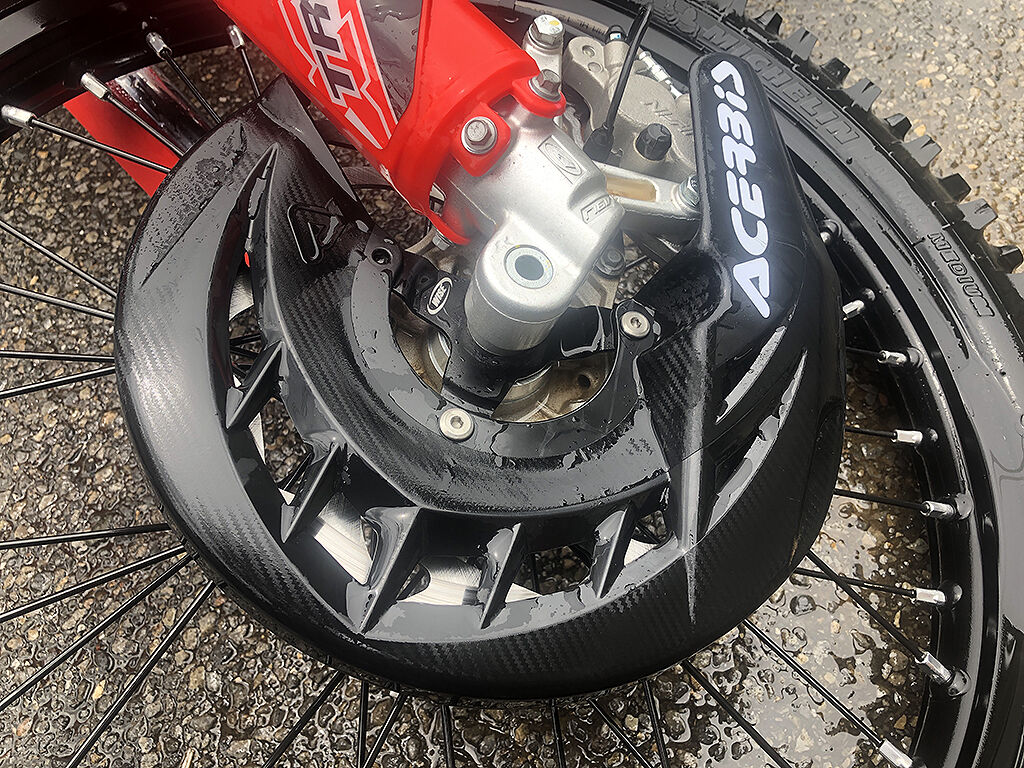 翌日、自宅で洗車の続きをやったのですが、今日の今日になって、初めて、クロトレにリアディスクガードが付いてない事に気が付きました。CRFには付いてたので、付いてるもんだと思って全く注意を払っていなかったのですが、付いてない。付いてないと分かってたら、購入予算に組み込んでいたのですが、今になって発見して困ってしまいました。しかも、社外のガードしかなく、それも結構いいお値段。そういえば、XR250もリアディスクガードが付いてなくて、ZETAのを付けたのですが、クロトレはあっちではトレール扱いなのかな。