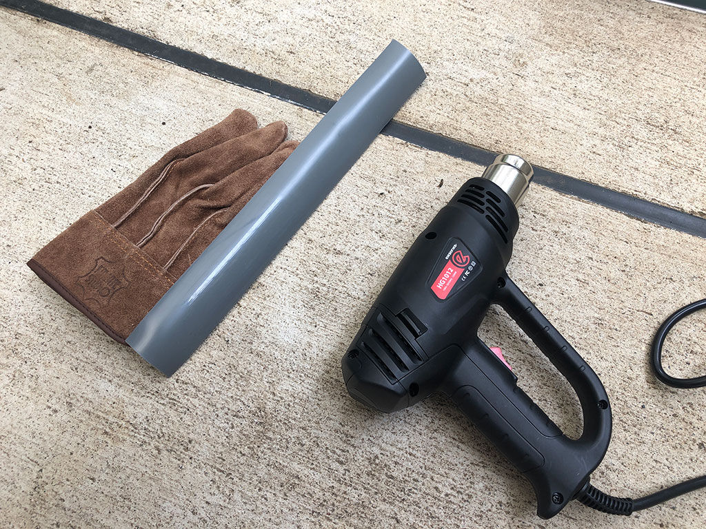 どうしたもんかと思ってた時、とあるフォロワーさんから塩ビ管を使う事を勧められました。塩ビ管を切り出して、熱して使えという事です。塩ビ管は水道工事などで、ガスコンロの火などで炙って曲げて使ったりしますので、ヒートガンでも熱して柔らかくする事が出来る、という事です。
