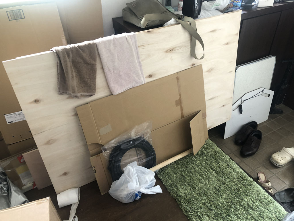 その他の準備としては、コンパネの縁に使うU字モール、フロア材、コンパネを繋ぐアングル、シートカバー、立体フロアマット、などなど、必要と思われる部材を、教えて貰ったり自分で考えたりして、作業日までに全部揃えました。