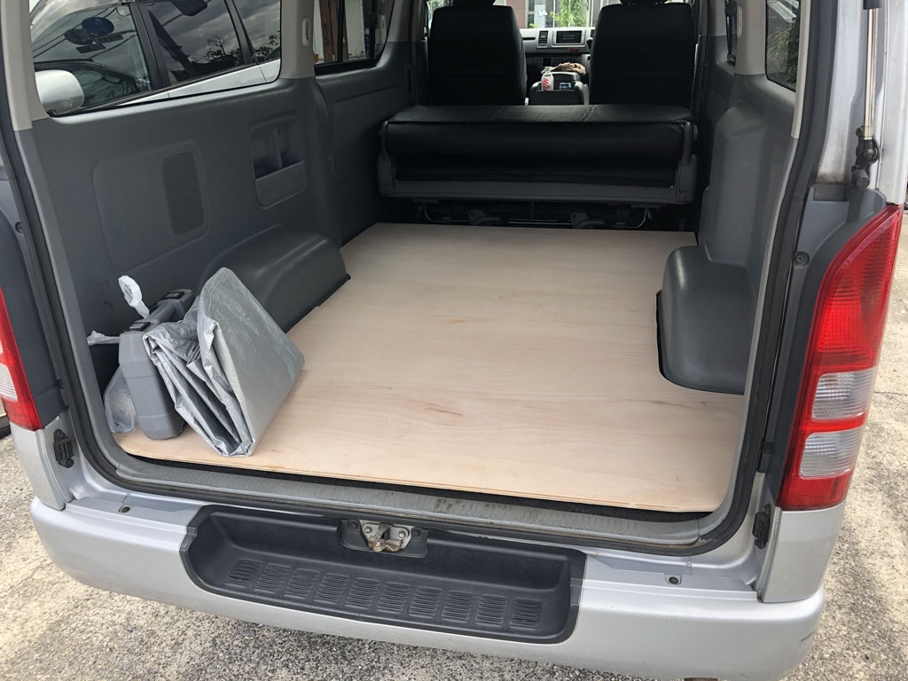 今回は、トランポ化の肝である荷室の床貼り編です。