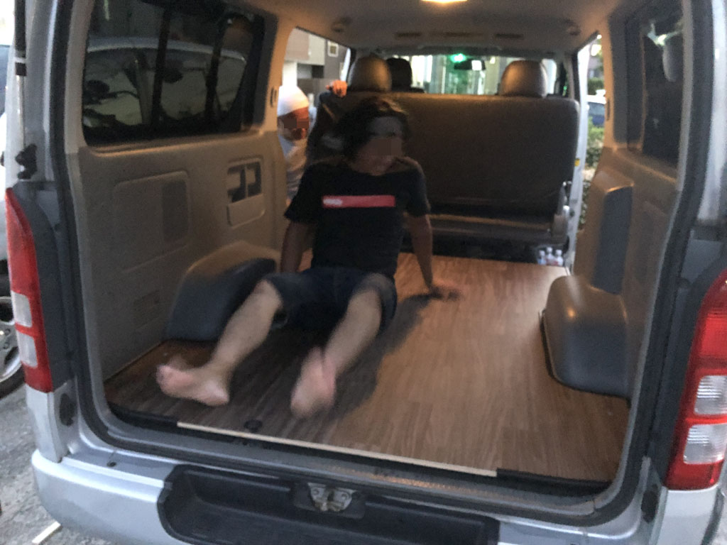 この後、床板の前後にL字アングルをかましたりする作業があるのですが、もう陽も暮れましたし、後述する事情で一旦車屋さんにこのハイエースを戻さねばならなかったので、今日のところはここで作業を終えました。