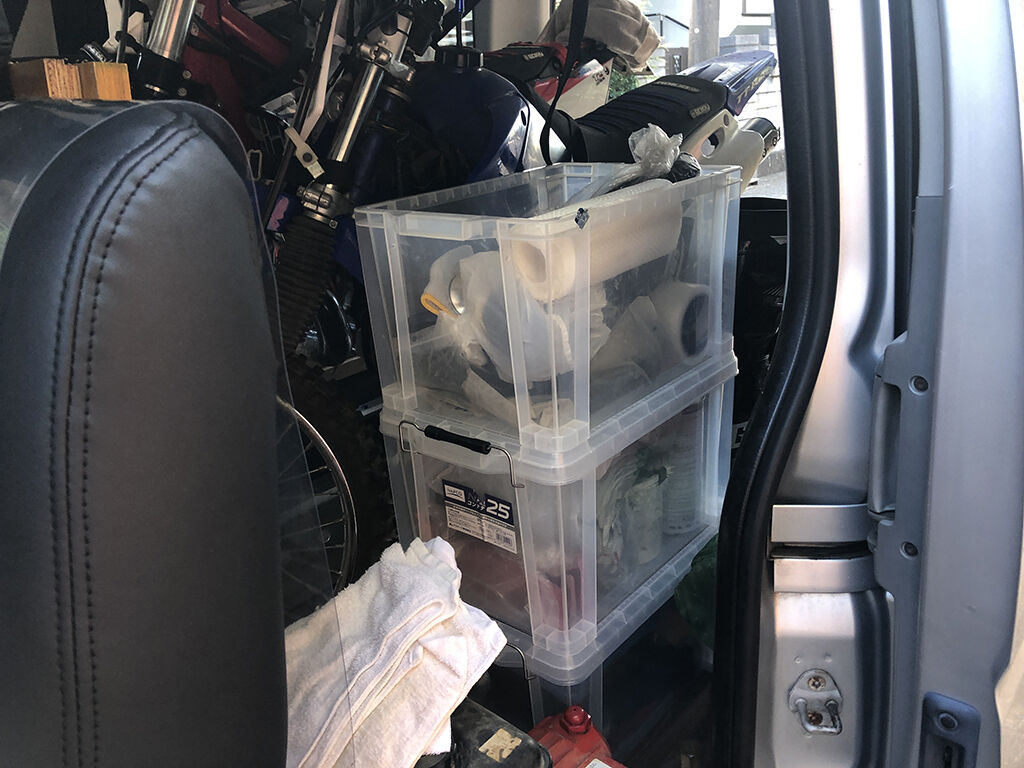 これまで、クロトレを右端に寄せ、TT-R125をその左隣に置く、という配置でバイクを搭載していたのですが、様々な不具合が出てくる事がわかりました。というのは、