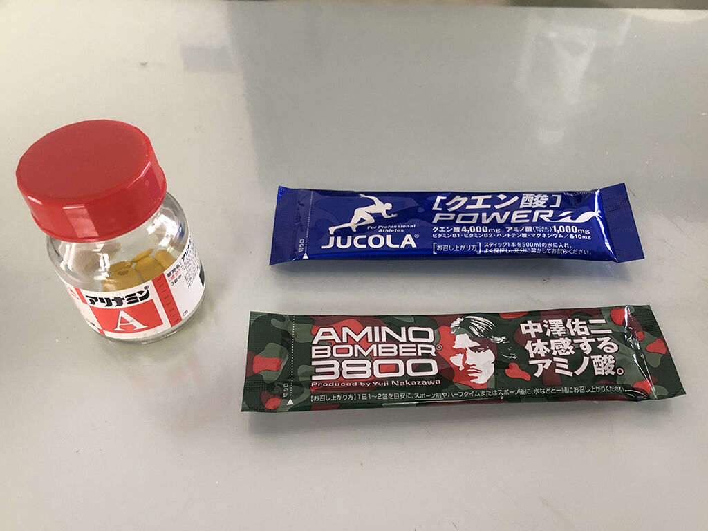 最後に、これは高齢の人がよく飲んでると思いますが、自分はアリナミンを飲みます。アミノボンバーが瞬発的なスタミナに効くのに対して、アリナミンは恒常的なスタミナに効果がある様で、この二つのパワーサプリをちゃんぽんする事で、どうにか40代の頑張りが出来ます。若い人はアミノボンバーだけで十分です。