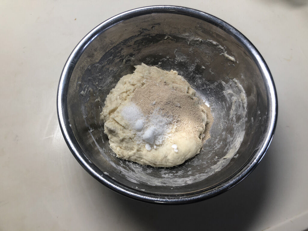 生地に砂糖、塩、イーストを混ぜます