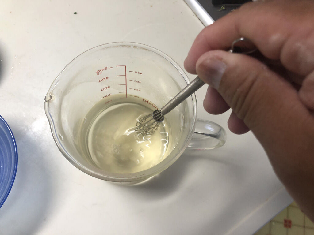 先にぬるま湯170gで蜂蜜を溶きます