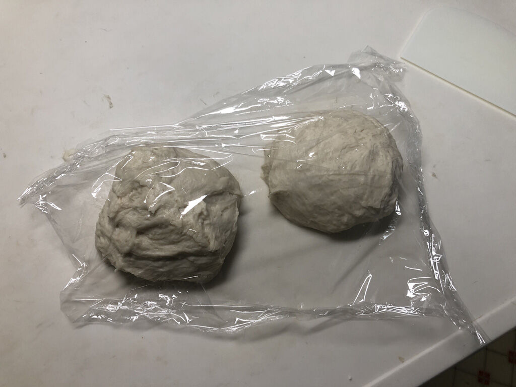 - ガス抜きして、二分割し、各々丸めて縁を閉じ、ベンチタイムを取る。