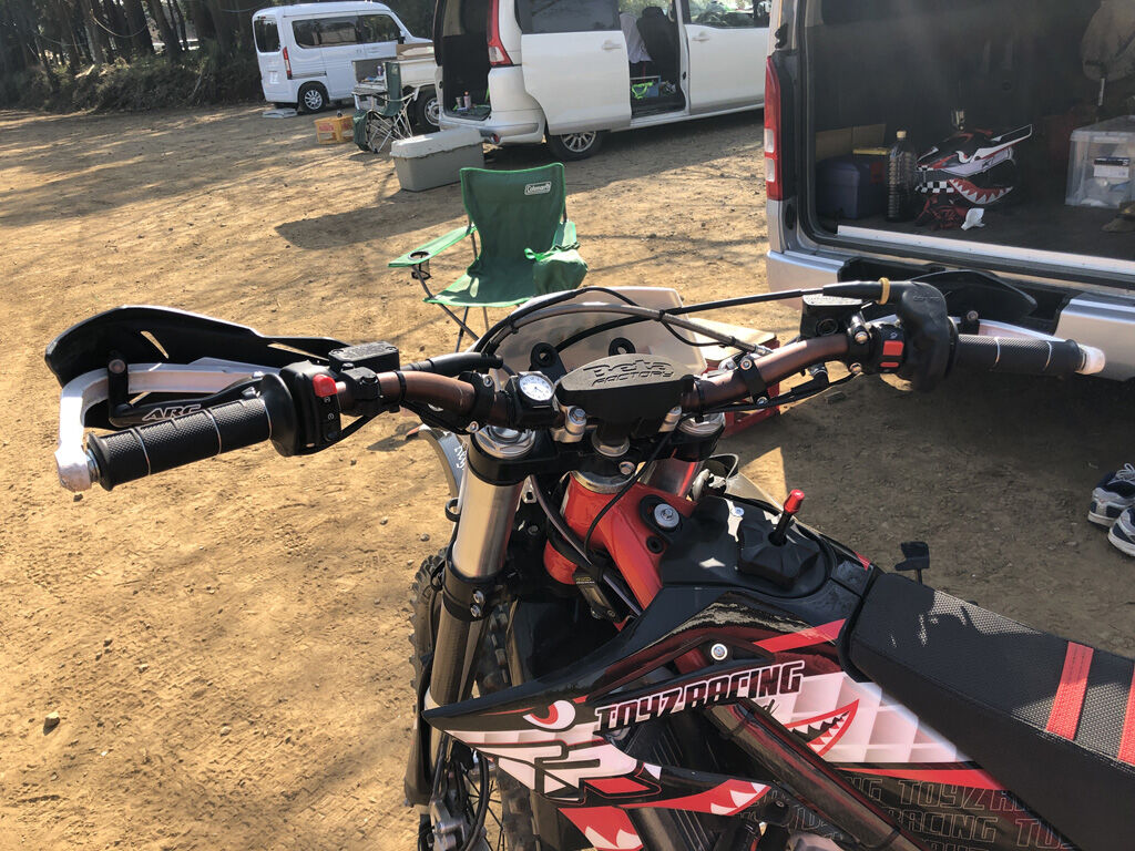 それなりに傾斜のある坂だったのですが、それでも坂の途中から再発進できたのには、ちょっと驚きました。キック始動ならいうに及ばず、X化したCRFでもあの芸当はちょっと難しいのではないか。セルスイッチ移設で、やれる事が増えた事以上に、クロトレの凄さにまたも驚かされました。