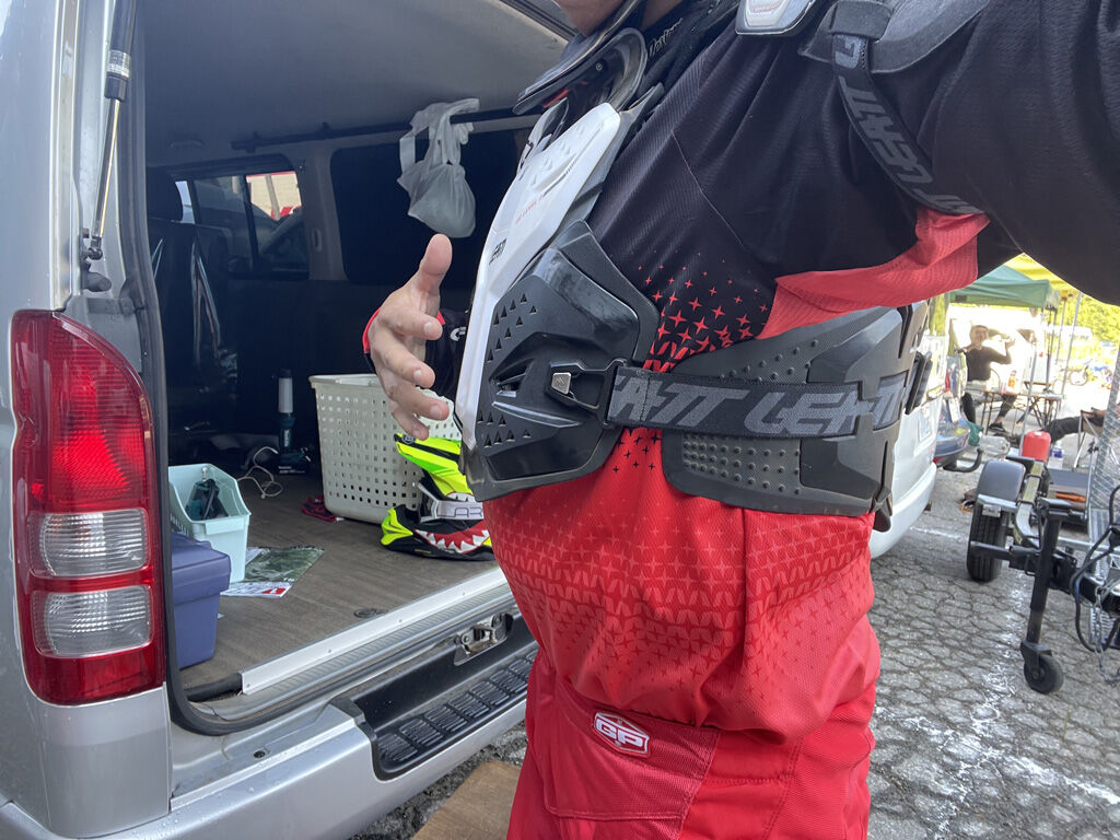 気になるのは、肋骨折った後に脇の装甲のあるチェストプロテクターが、ちゃんと脇の所が閉まる様になったかですが、これがなかなかきっちりとは閉まってくれず、今でも隙間が空いています。まぁ、モトクロスやってる人は、みんなスマートですから、これが閉まる様になるには、90kg台ではダメだという事でしょう。ただ、モトパンの腹回りは相当に楽になって、ウエストベルトをしてても余裕で入る様になりました。