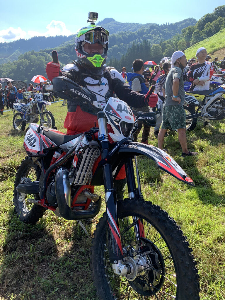 ちなみに今回、前日に珍しく徒歩でコースの下見に行きました。WEXと違ってJNCCではセクションスクールなどはないので、自分の足で歩くしかないのですが、大汗かきながら全線歩き通しました。まぁ、以前の様に体重が0.1tもあったらまずは歩けなかったと思いますが、今は毎日駅までの道を徒歩で往復し、一日で1.3万歩くらい歩くので、どうにか歩けました。レースにおいて前日に下見や試走をしておくというのは、本番当日に気持ちの余裕が出来る事なので、本当はやった方が良いのです。