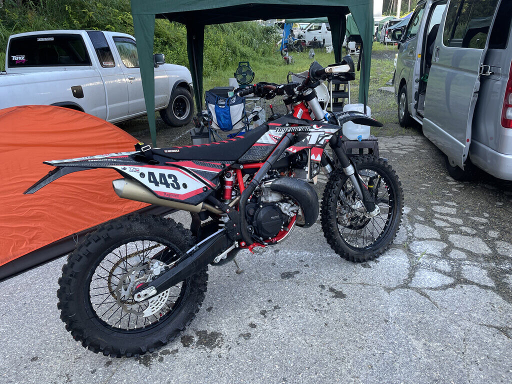 バイクそのものは洗車と注油以外に何もしてないのですが、去年はリアタイヤをVE33Sにして出たところ、上りのガレ場でも下りでもまったく地面を食う感じがしなくて、非常に走りにくかった事もあり、今回はミシュランのエンデューロ・エクストリームにしました。前回のWEX勝沼でもコケるまでは調子が良かったですし、遡れば初めて神立に来た時も、エンデューロ・ミディアムでとても走りやすかったので、足回りに関しては自信を持って乗り込みました。