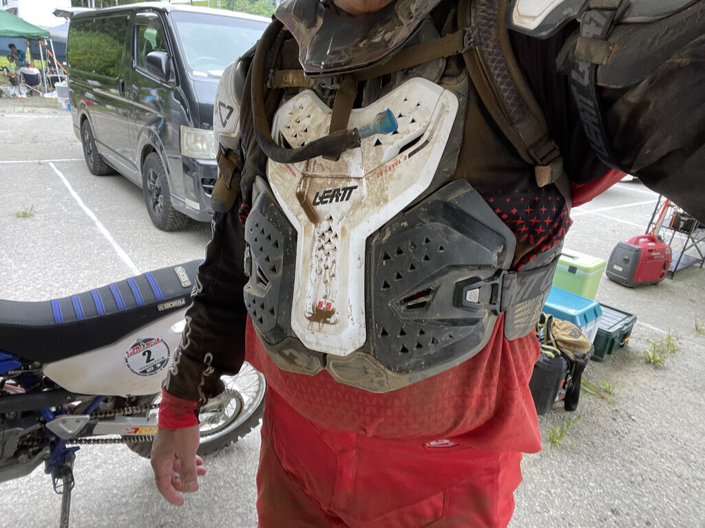 そして5周目、ガレ場でコケて再発進しようとしたら、エンジンが掛からずリザーブに入れなければなりませんでした。前回は6周目でリザーブだったので、それよりも1周早くリザーブに入ったのはちょっと驚きでした。原因としては、出だしの2周は晴モードだった事、車速が伸びない割にはアクセル開ける事が多く、結果、燃料冗費が前回よりも多かったのではないでしょうか。
