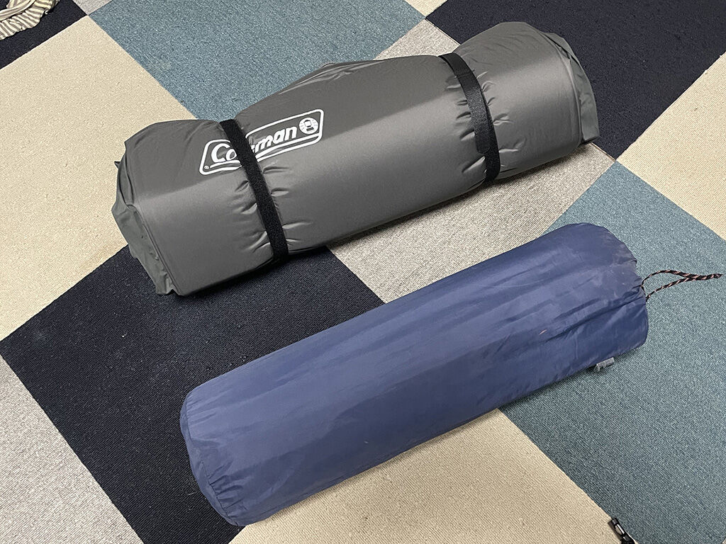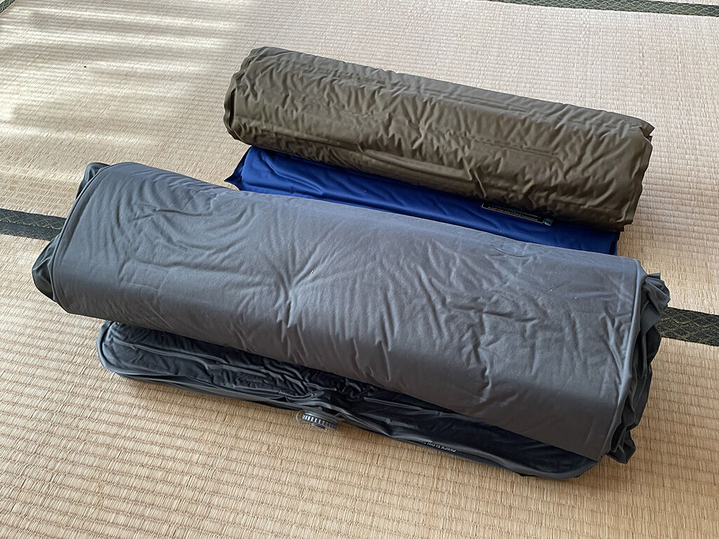 歩きやバイクの場合は、ロールマットやサーマレストのプロライトといったマット一択で、少々寝心地悪くても軽量小型を優先せねばなりませんが、輸送力のある自動車の場合は少々荷物が嵩張ったり重くなっても問題にはなりません。その様な訳で、自分もサーマレストとしては嵩張る部類のベースキャンプを使っていました。