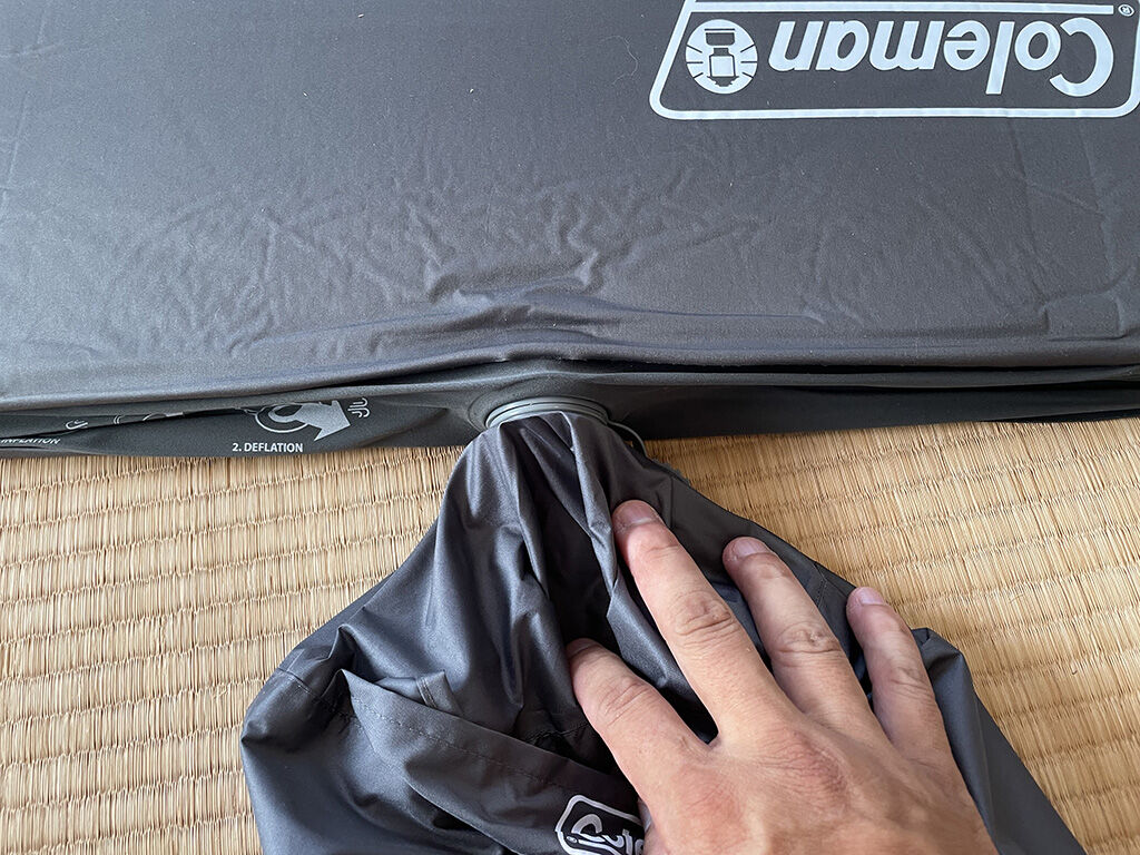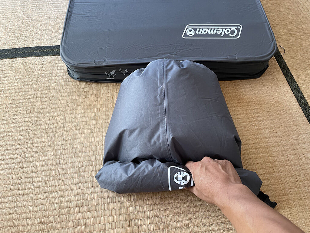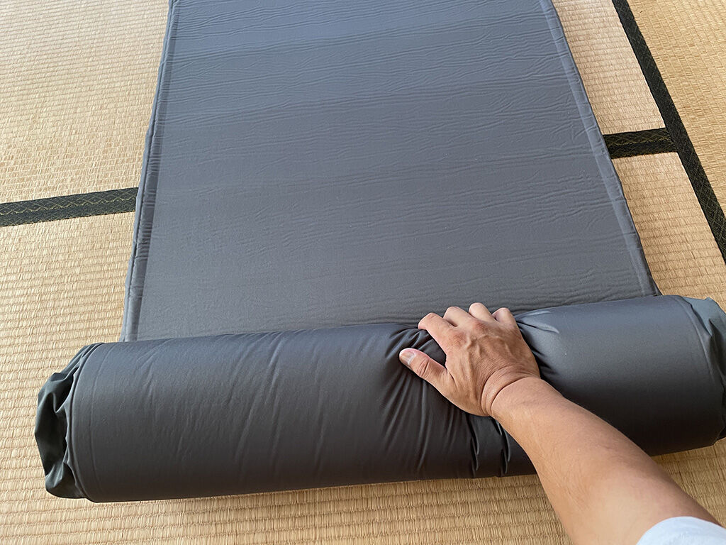 ケースを丸めていくと、中の空気がマットに入っていきます