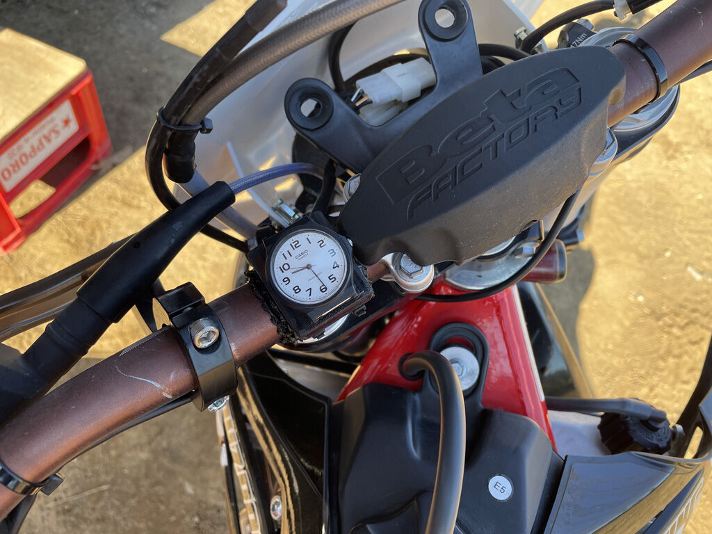 これまで、全然リザーブに入らず、一体どうなってるのかなー、と思っていたのですが、この頃になってようやくリザーブに入りました。それもトランポの目の前で。急ぎ給油して残り10分走ろうと思ったのですが、「12時から昼休みじゃないですか?」と言われ、そうだっけ?と思いつつ、残り10分走ろうが走るまいが、大勢に影響ないわと思い直し、2.5時間耐久練習を終了しました。