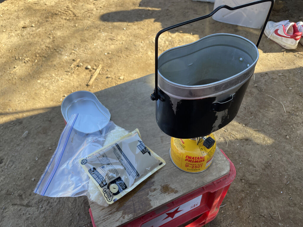 今回は飯盒炊飯じゃなくて、アルファ米です