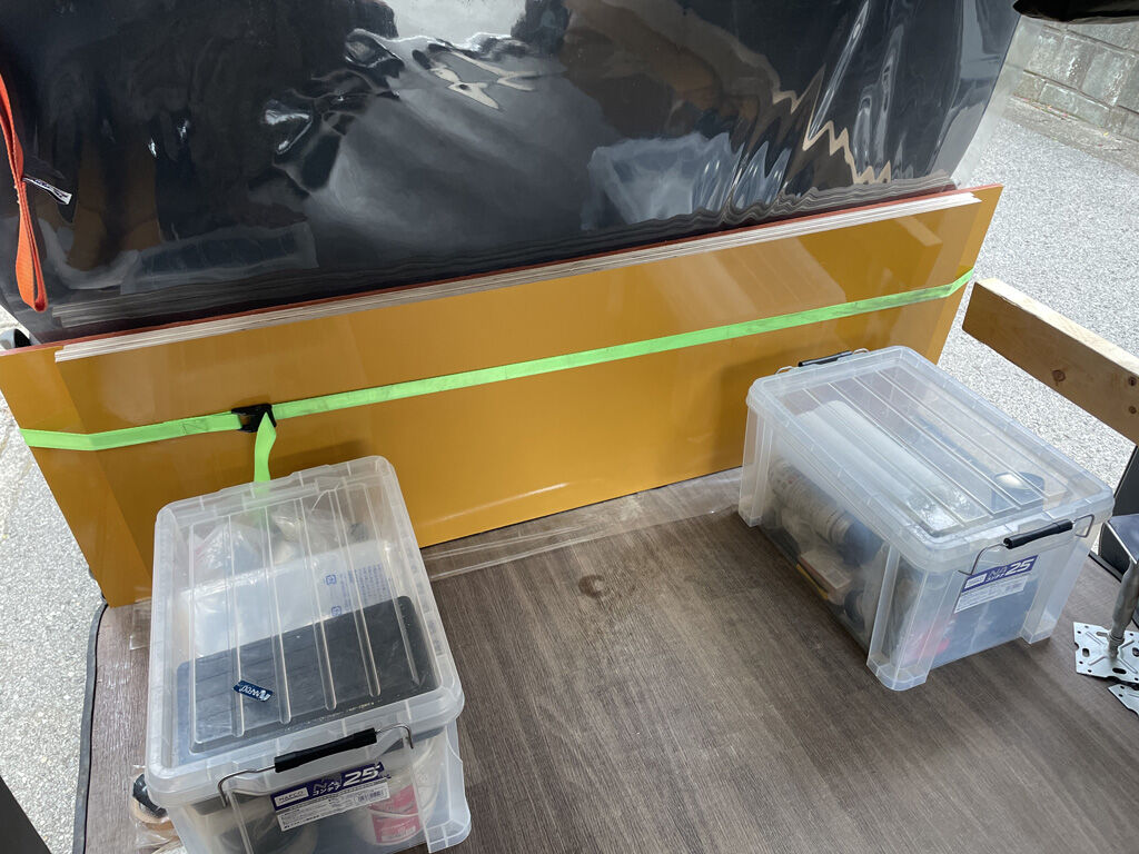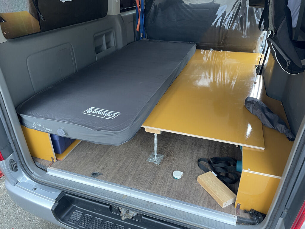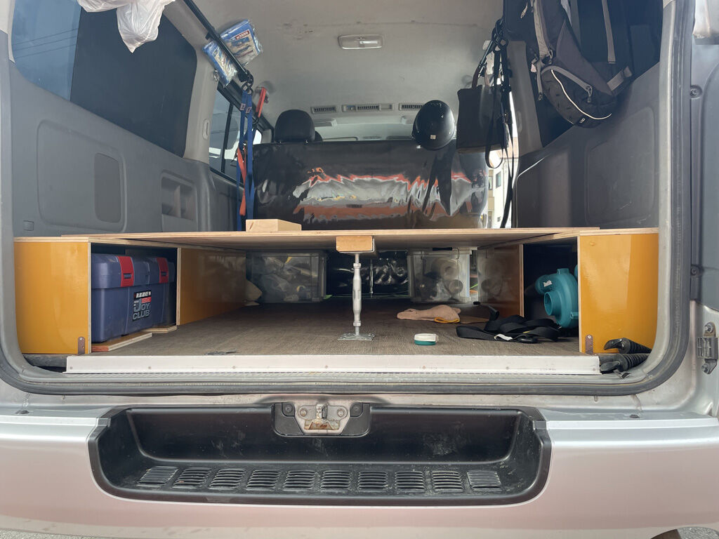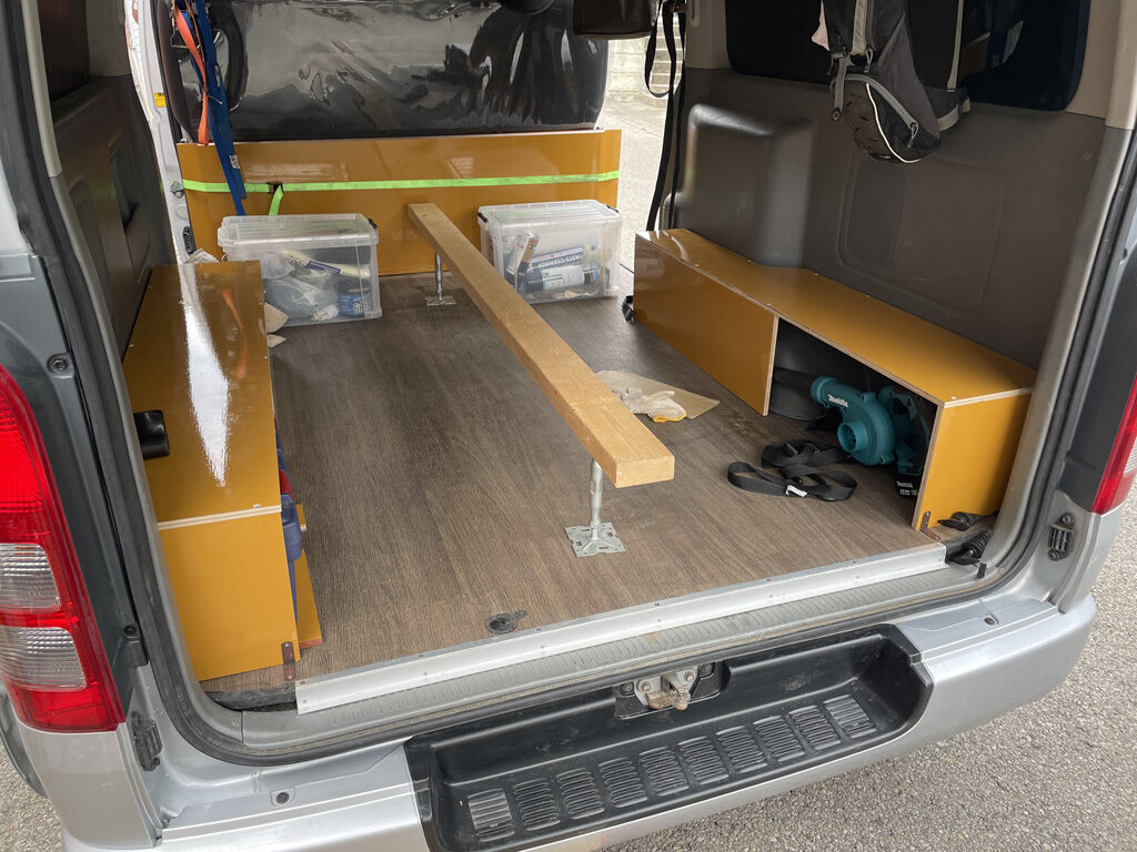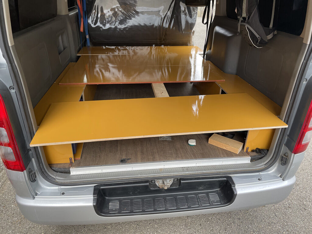 200系ハイエース“プシュパカ・ラタ号”は早い段階でベッドキットならぬ寝板を装備したのですが、その実、案外使い勝手の悪い事が分かってきました。また、寝板も本来以外での用途で使う事が常態化してきましたので、ここらで思い切って作り直す事にしました。