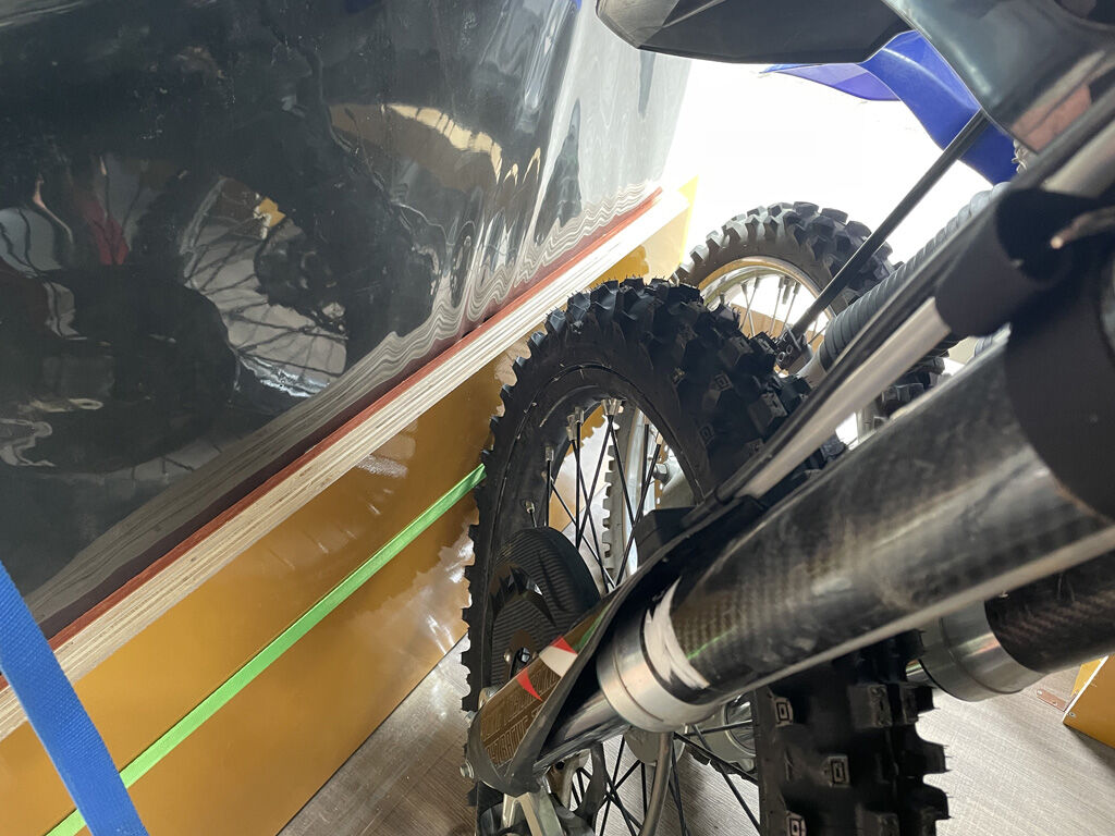ともあれ、4枚重ねてやってみました。結論としては、クロトレのリアタイアにリアゲートがぴったり当たるものの、ちゃんと閉める事が出来ました。まぁ、問題はなさそうです。他のバイクだったらダメかもしれません。ぴったりリアタイアに当たっているので、このままだとリアゲートの内側が汚れたり、タイヤの跡が着いてしまうかもしれません。何かで養生すれば良いと思います。