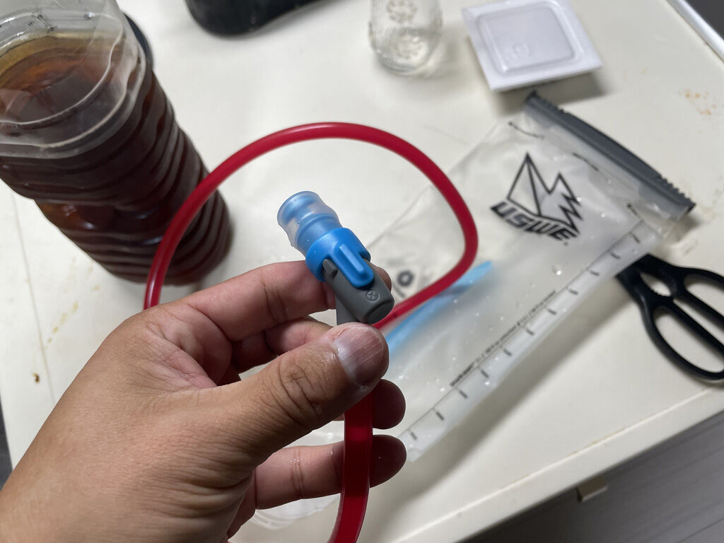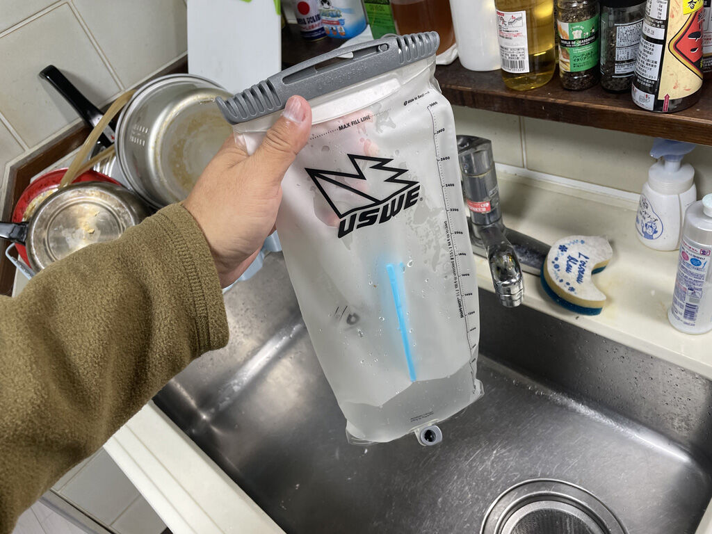 この手のハイドレーションで結構大事なのが、使った後の手入れです。水しか入れない場合でも、使いっぱなしにして放置すれば、中で水が腐ったしますし、自分みたいに麦茶いれる人は、うっかり手入れを忘れると、後がひどい事になって下手したら買い替えの憂き目に遭います。