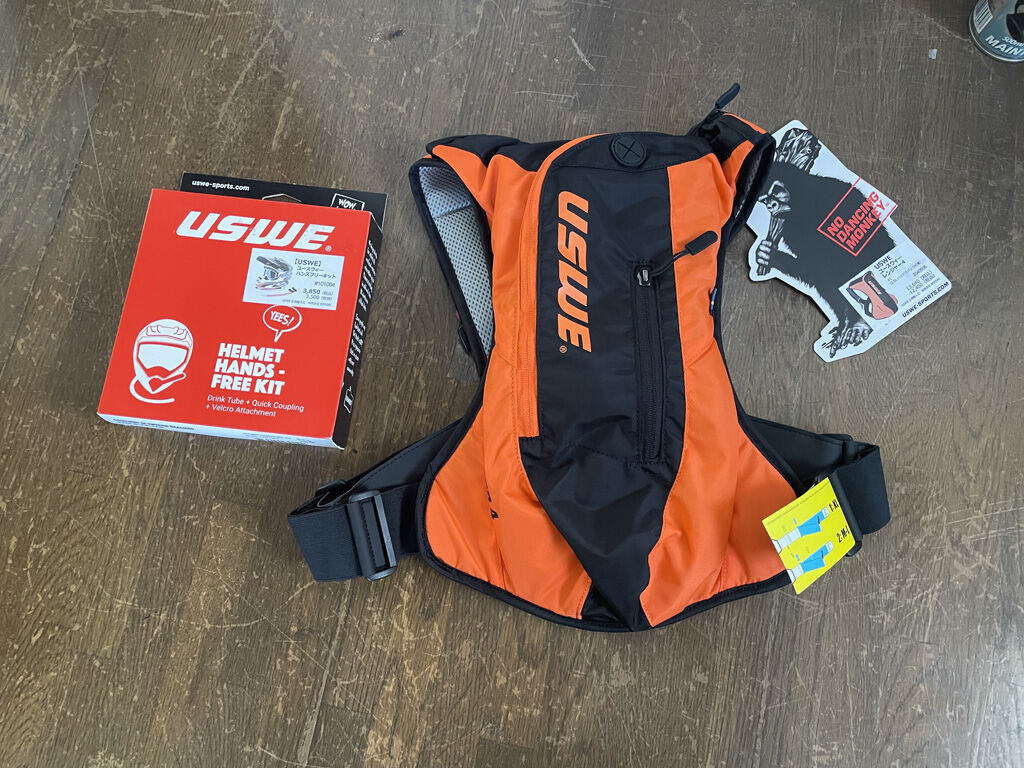 去年のモチュールカップの、特に夏場のレースで感じたのは、背中に背負ってるハイドレーションの飲料を飲むのに、いちいちチューブの吸い口を口に持っていくのに手間が掛かるという事でした。安全運転の見地から、自分の技能では減速せざるを得ず、こらあかんなーと思ってたところ、最近のハンズフリーキットはなかなか良いのがあるのを見つけました。USWEのヘルメットハンズフリーキットですが、これまで使って来たキャメルバックに使えるか分からなかったので、ハイドレーションの方も注文しました。