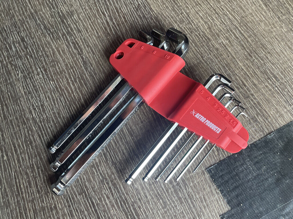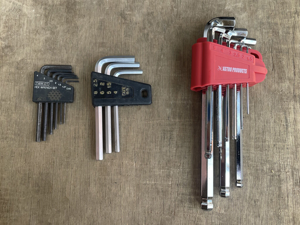L形の六角レンチもいろんなタイプがあるのですが、このアストロのものは、その名の通り、L形の短い方の辺が短くなってます。これこそが今回わざわざ買った理由なのですが、狭いところで使うのに適しています。こんなのどこに使うのか、と以前なら思ってたでしょうが、まさにこういう用事のためのレンチなのです。