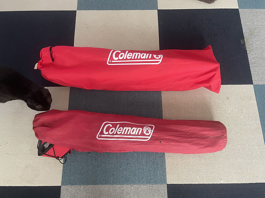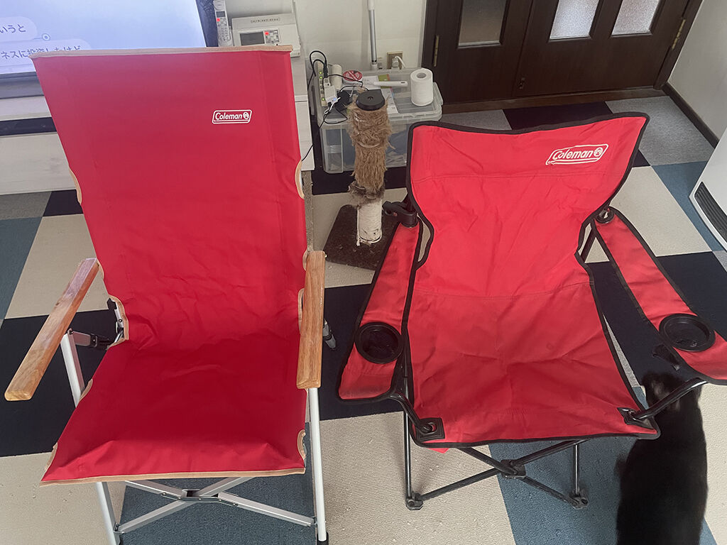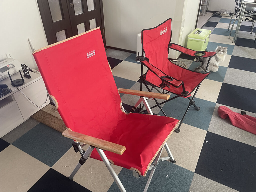 その後、コールマンのインフィニティチェアというのを持ってきた人がいて、これはイージーリフトチェアよりもよくリクライニングして、コットとしても優れているものですが、如何せんデカい!重たい!という訳で採用に至りませんでした。