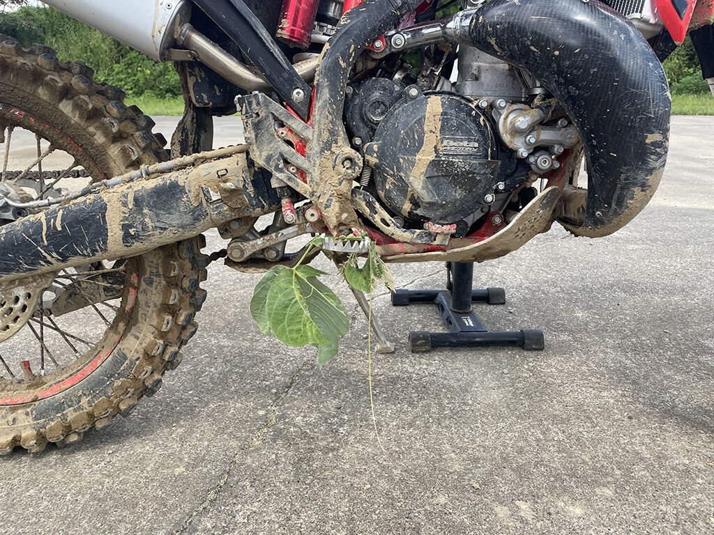さて、今回はジャンプ飛ぶつもりでタイヤの空気圧を前0.7、後0.6にセットしました。他の先輩方は0.8くらいだったりするので、まだ低い方です。エンデューロだと空気圧落とすのが多いのですが、BTC市貝はそこまでチュルチュルしたコースではないですし、ジャンプ飛ぶつもりならリム打ちの心配の方こそせねばならない、という訳です。