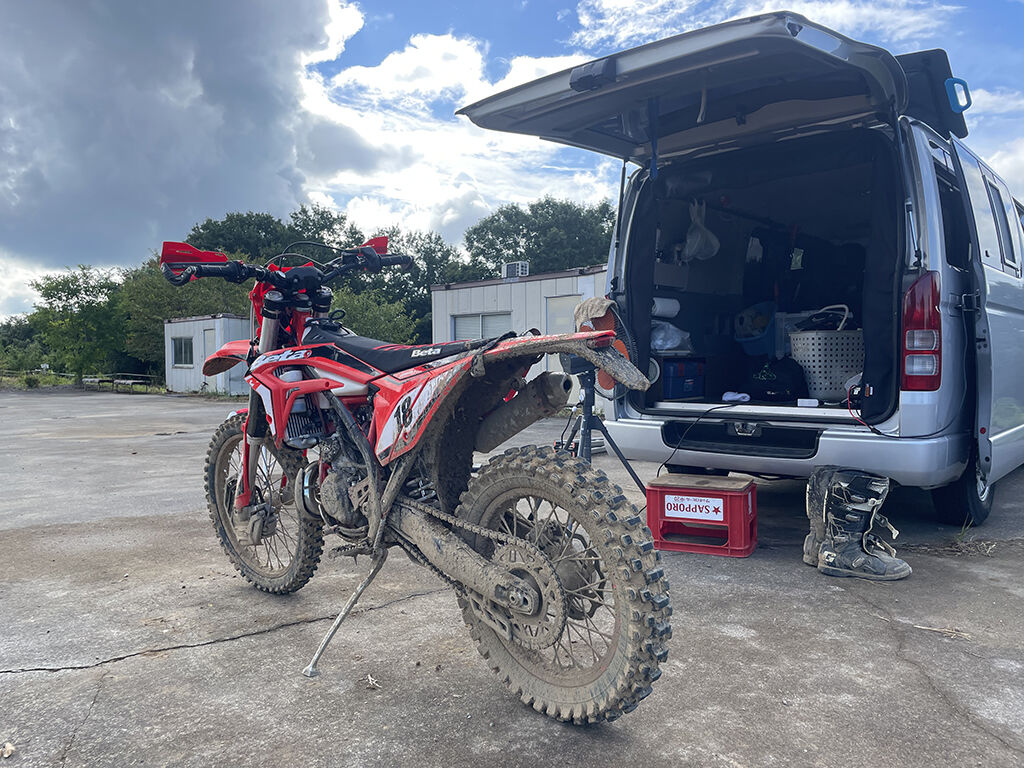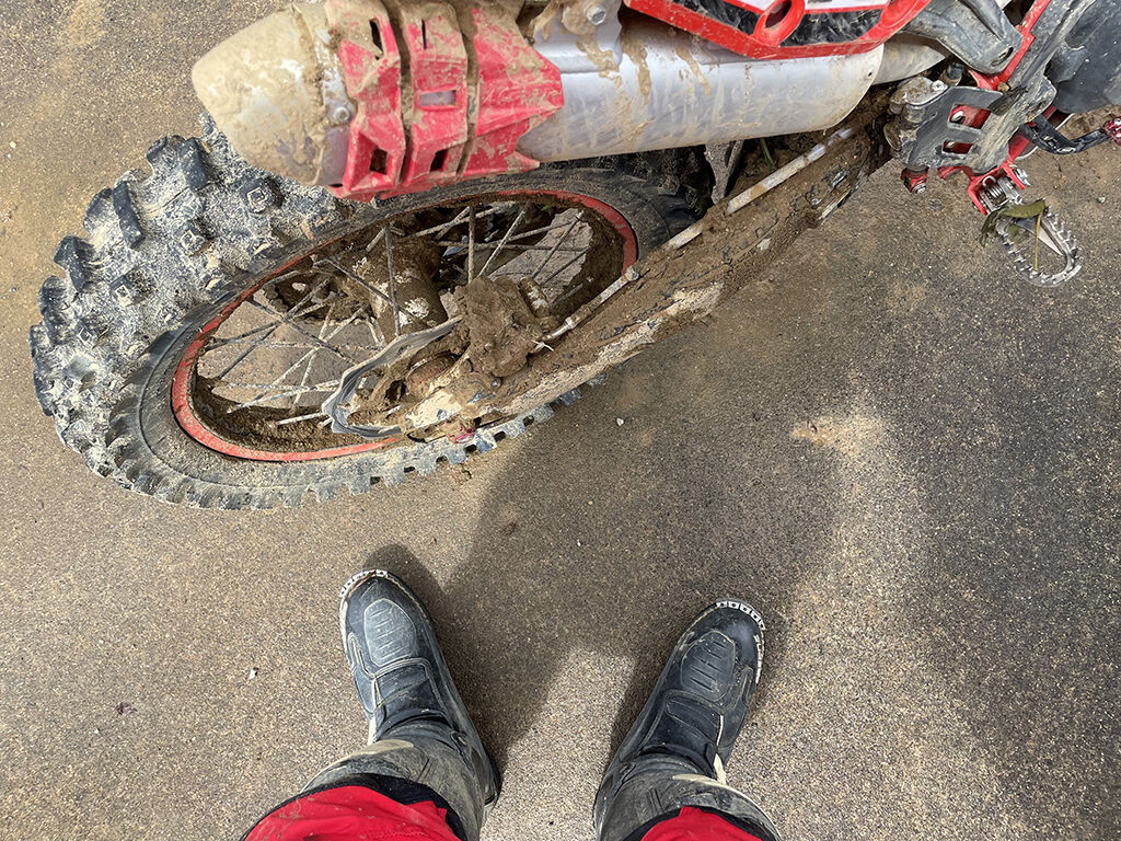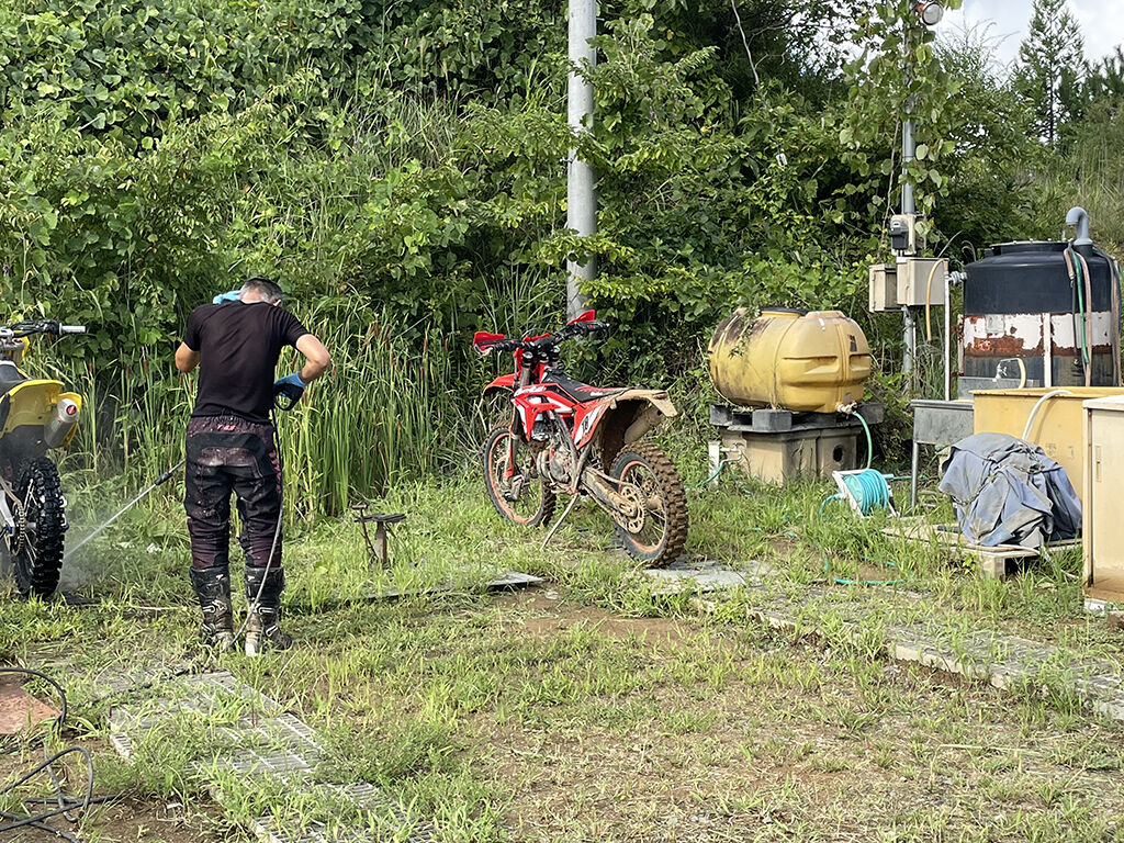 この後は、ひたすらショートコースで反復練習。反復練習というと、フロントアップとか丸太越えといった、トライアル的なのをイメージするのですが、モトクロス的な練習でこうした反復練習というのは、これまであまりやってこなかったので、ちょっと斬新でした。