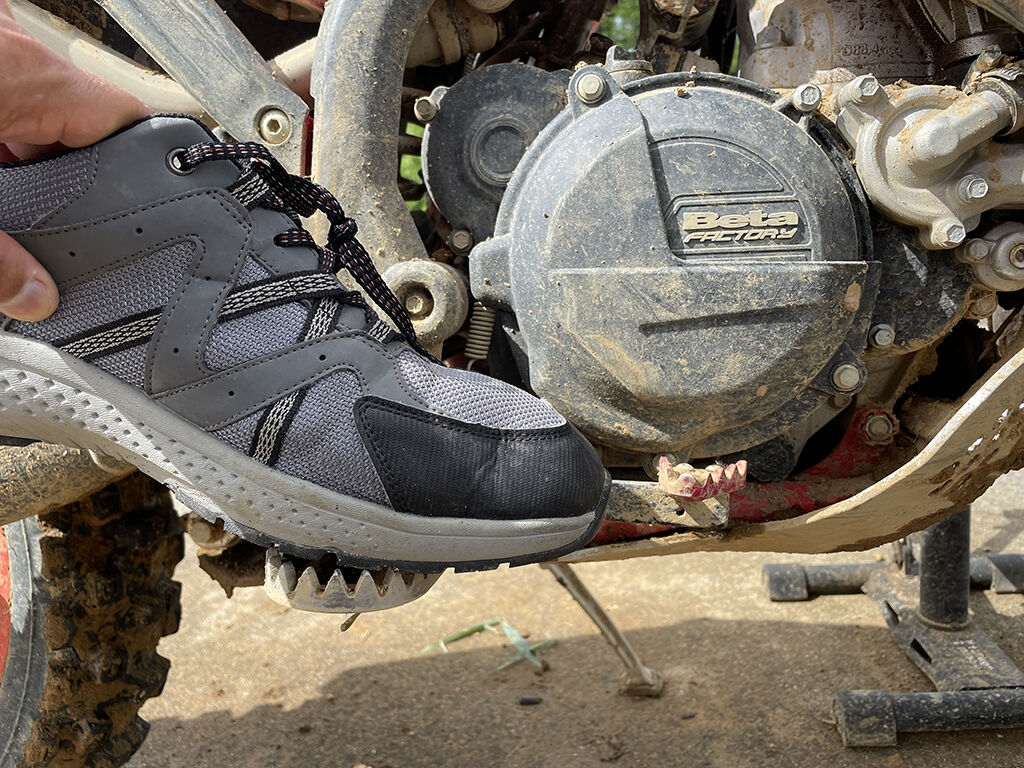 それは、リアブレーキを踏む時に右足のつま先を前に出しますが、そのままコーナーは下りやジャンプに進入すると、膝が折れやすいという事。右膝が折れたら左膝も折れやすく、どうもこれが膝が折れる切っ掛けになっている様です。